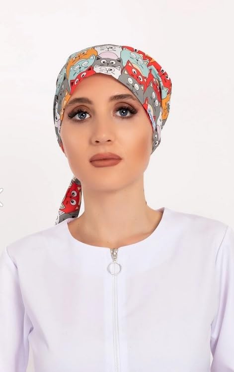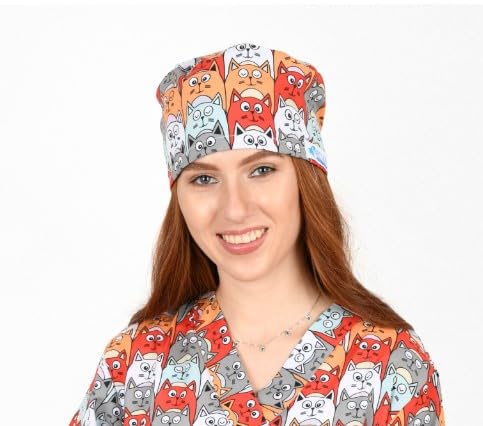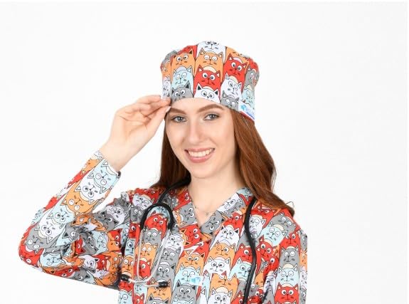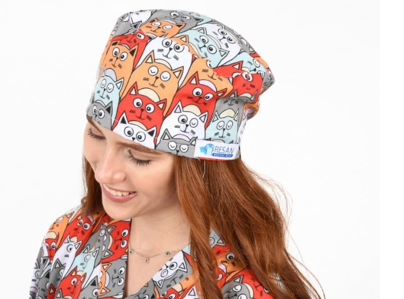 Resan Medical wear - غطاء رأس طبي مطبوع عليه قطط ملونة ومناسب للجنسين - كاب موحد للاستخدام في طب الأسنان، العمليات الجراحية، الطب البيطري، والتمريض