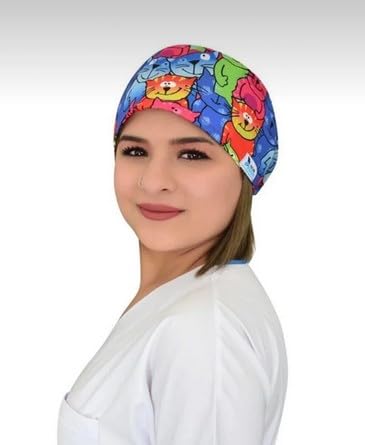 Resan Medical wear - غطاء راس طبي بطبعة قطط خضراء للجنسين - غطاء راس لطب الاسنان - غطاء راس للجراحة - طبيب بيطري - زي ممرضة