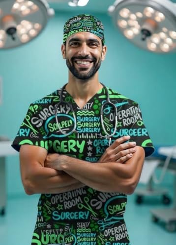 Resan Medical wear - غطاء راس طبي مطبوع للجنسين - غطاء راس للجراحة الجراحية - جراحة جراحية - جراحة - جراحة - جراحة تجميل - طبيب مقشر - غطاء راس موحد للممرضات