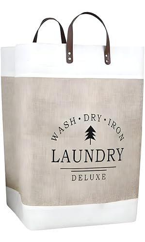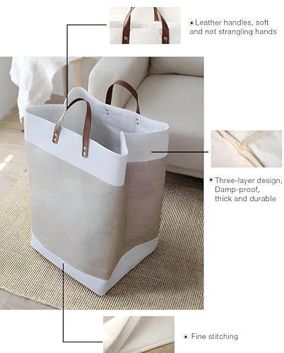- مصنوعة من قماش الكتان المتين مع خياطة معززة، توفر سلة الغسيل هذه قوة تدوم طويلاً مع الحفاظ على جمالية أنيقة تكمل أي ديكور منزلي، وتمزج درجات الألوان المحايدة من الأبيض والبيج والرمادي للحصول على مظهر أنيق وعصري.