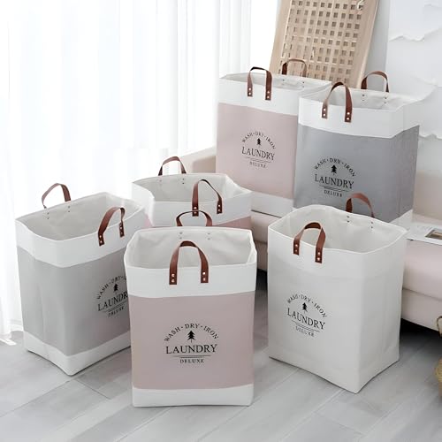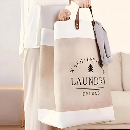 Generic - سلة غسيل من الكتان مطبوعة - سلة انيقة قابلة للطي بمقابض جلدية، مصممة للملابس والالعاب ومستلزمات الحيوانات الاليفة؛ قماش قابل للغسل، تصميم جمالي عصري، تخزين مضغوط.