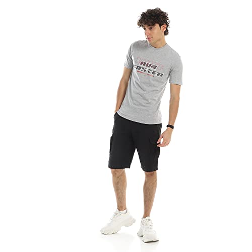 Mesery - تيشرت من القطن بلون رمادي وبطبعة للرجال، CAL02501