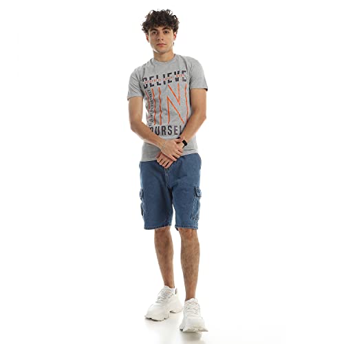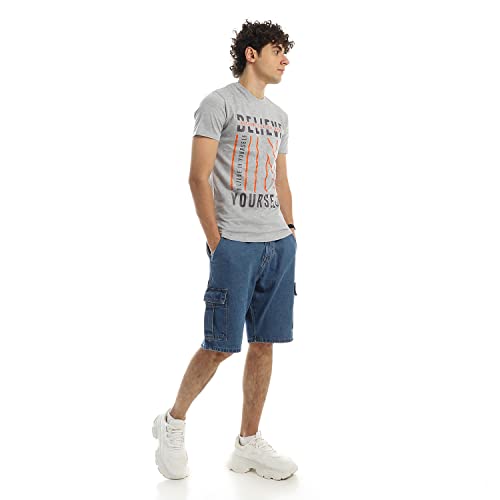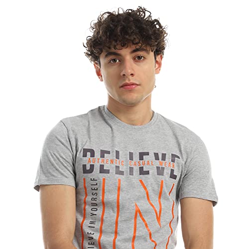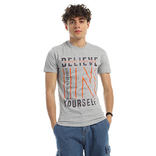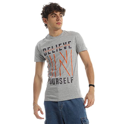Mesery - تيشرت من القطن مزين بطبعة للرجال، لون رمادي - N1G214057U