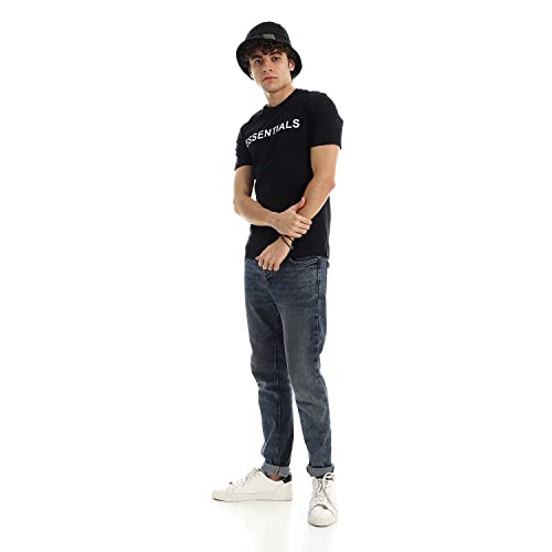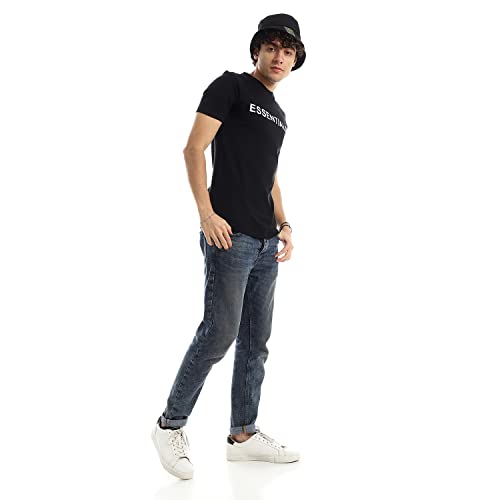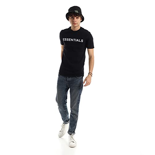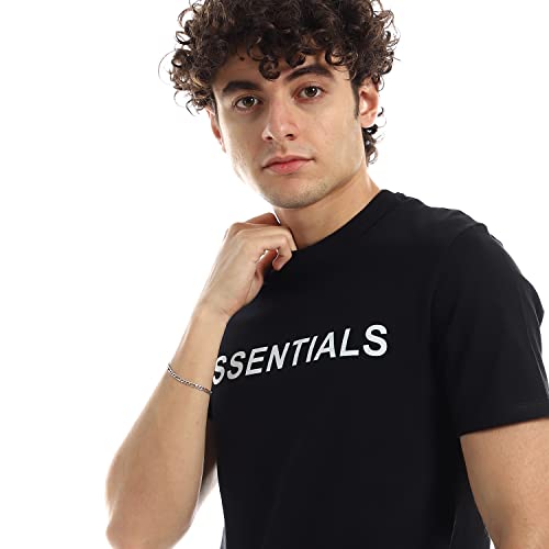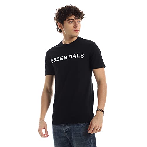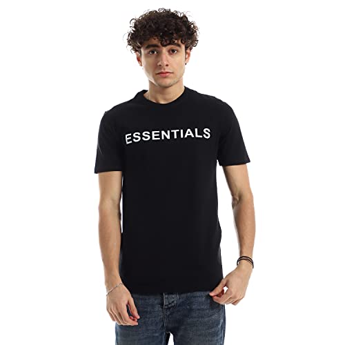Mesery - تيشرت رجالي بأكمام قصيرة ورقبة دائرية بطباعة عبارة "Essentials"