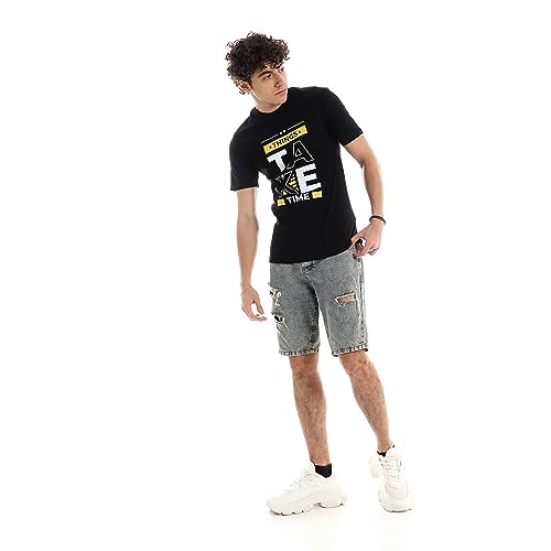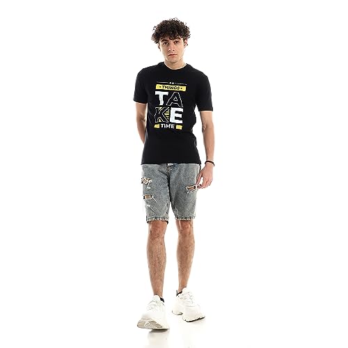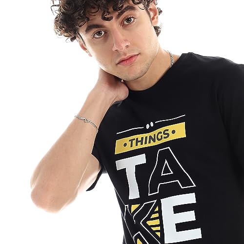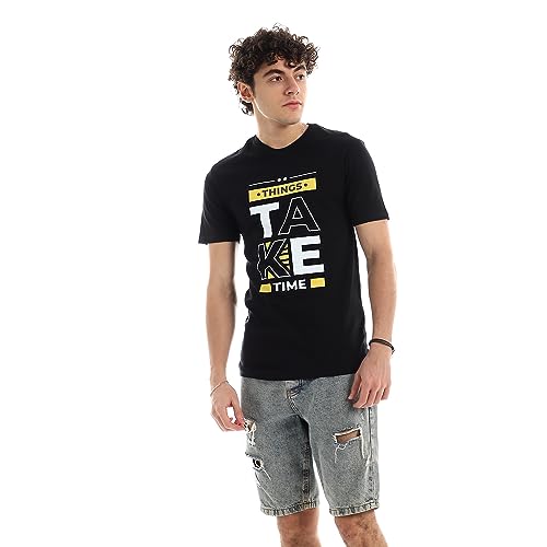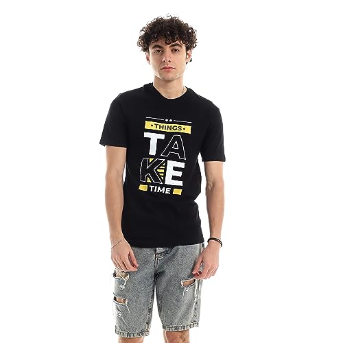 Mesery - تيشرت بأكمام قصيرة ورقبة دائرية وطبعة عبارة «Things Take Time» بلون نبيتي