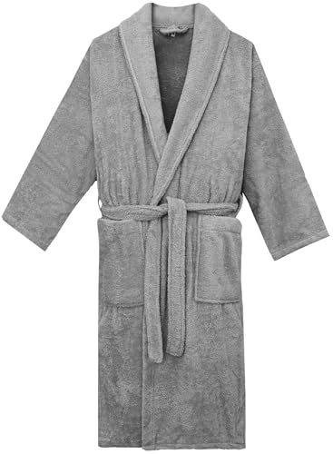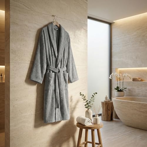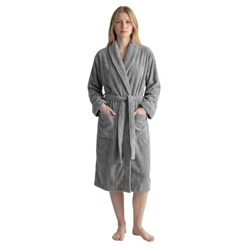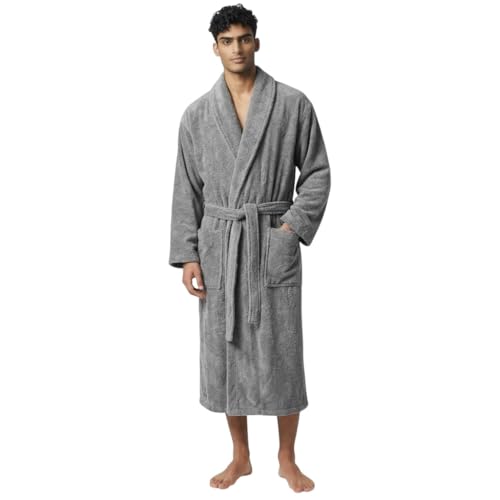 Printex.EG - روب استحمام رويال فاخر من القطن للبالغين من برينتكس - روب سبا فائق الامتصاص وناعم - جودة فندقية ممتازة مع جيوب وحزام خصر - تصميم للجنسين (رمادي)