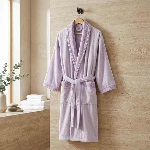 Printex.EG - روب حمام رويال فاخر من القطن للرجال والنساء من برينتكس اي جي - نمط انيق مطبوع - فائق النعومة وعالي الامتصاص - مثالي للسبا والفندق والمنزل (طباعة دانتيل)