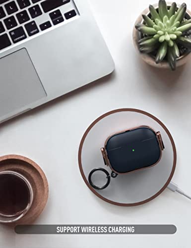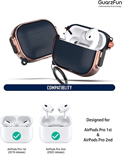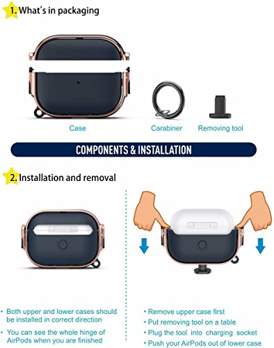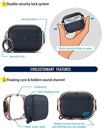 Printme - حافظة حماية لسماعات اير بودز برو الجيل الثاني 2022 بمشبك غلق آمن للسماعات، مصنوعة من مادة هجينة وحماية كاملة للهيكل لاير بودز برو 2 الجديدة واير بود برو (لون أزرق وروز جولد)