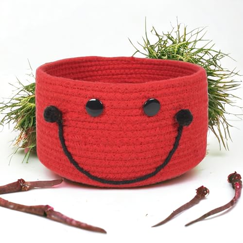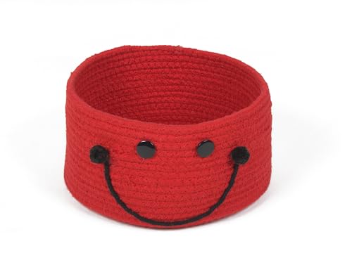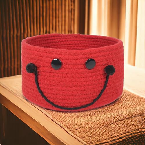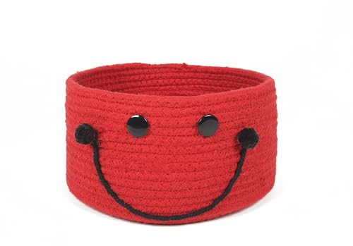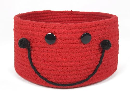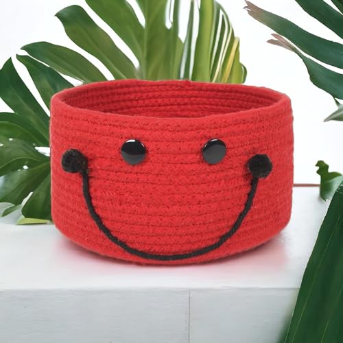 PrintShoppie - سلة تنظيم دائرية منسوجة يدويا للأطفال بتصميم وجه مبتسم من برينت شوبي للألعاب وغسيل الملابس وملابس الأطفال، سلة دولاب الملابس والنباتات (21 سم × 11 سم)، أحمر