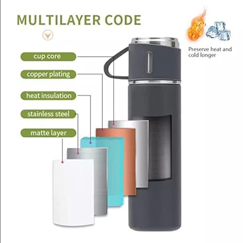 Prisha A God's Gift - طقم ترمس حراري عازل للحرارة من الفولاذ المقاوم للصدأ مع 3 أكواب للمشروبات الساخنة والماء البارد، هدية لموظفي الشركات والمكتب وهدايا للنساء، عبوة من 1 قطعة سعة 500 مل متعدد الألوان من بريشا