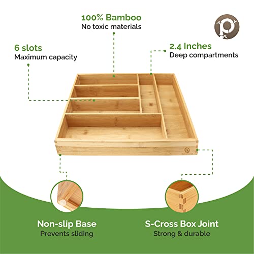 - ابتسم في كل مرة تفتح فيها الدرج: منظم الأدراج الجميل المصنوع يدويًا والمصنوع يدويًا من الخيزران النقي هو أفضل طريقة لتنظيم أدوات المائدة وأدوات المائدة والأواني الخاصة بك بشكل أنيق. إنها قوية ومتينة وسهلة التنظيف للغاية وتأتي مع ضمان لمدة عام.