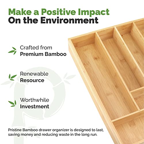 Pristine Bamboo - صينية فضية للادراج مقاس 17 × 12 انش غير قابلة للانزلاق منظم ادوات عميق للغاية درج المطبخ المائدة وادوات حامل مائدة خشبي
