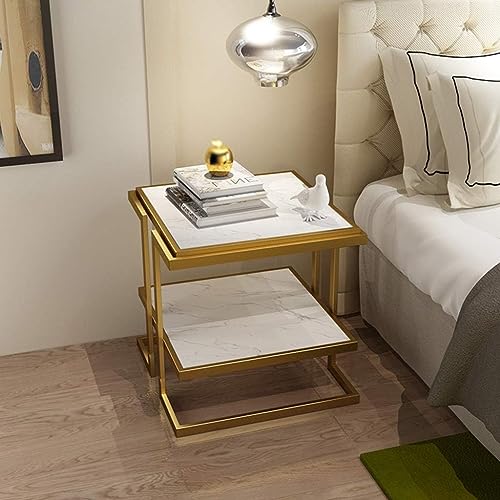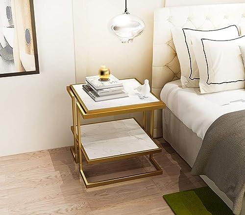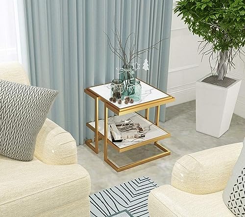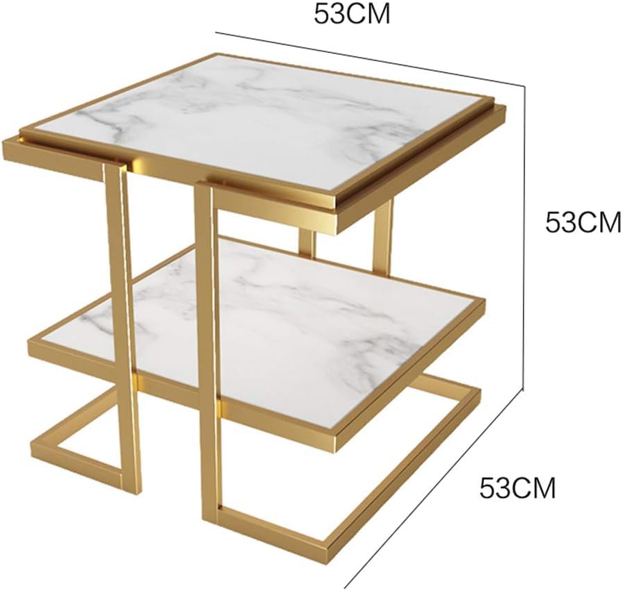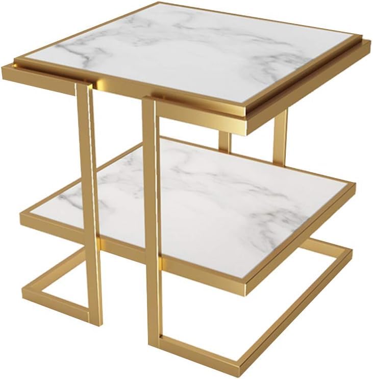Priti - ترابيزة قهوة رخام مزدوجة الطبقات من الحديد الذهبي بتصميم مربع لتزيين غرفة المعيشة والبلكونة في الهواء الطلق والمطعم بريتي أبيض