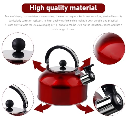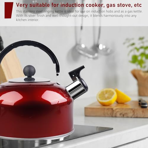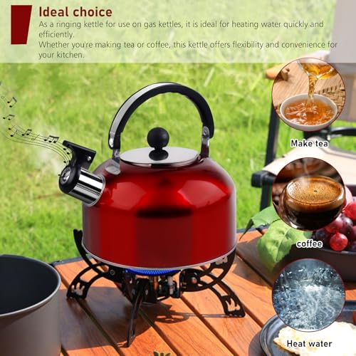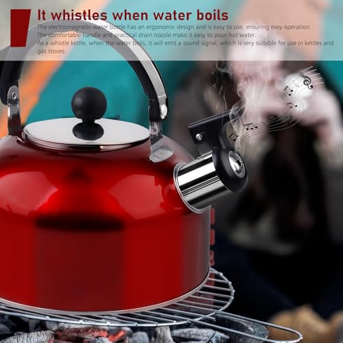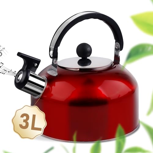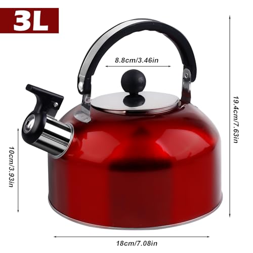 PRITOK - غلاية حثية من بريتوك: غلاية صفير سعة 3 لتر، موقد غاز للموقد وابريق الشاي، مناسبة للحث والغاز، غلاية ستانلس ستيل للشاي والقهوة، احمر