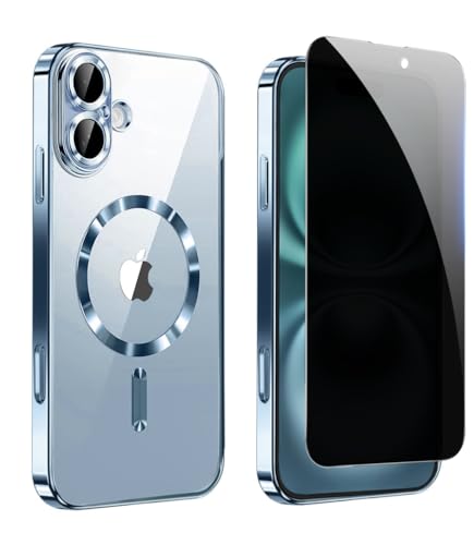 YEQIACAO - جراب خصوصية مغناطيسي شفاف لموبايل آيفون 17 من يكياكاو مع واقي شاشة للخصوصية وواقي كاميرا [متوافق مع ماج سيف]، غطاء مضاد للصدمات لموبايل آيفون 17 - أزرق
