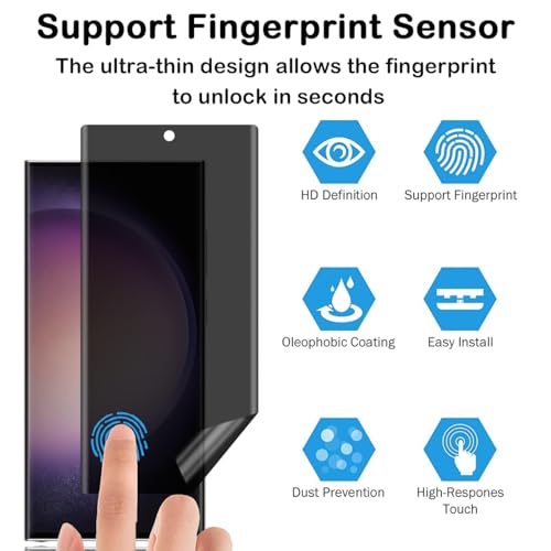 BCHKLAI - واقي شاشة للخصوصية لموبايل سامسونج جالاكسي S23 الترا/سامسونج جالاكسي S22 الترا [قطعتين]، واقي شاشة مضاد للتجسس، يدعم فتح القفل ببصمة الاصبع، مضاد للخدش، تغطية كاملة، غشاء ناعم من البولي يوريثين