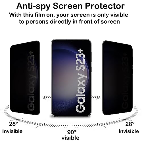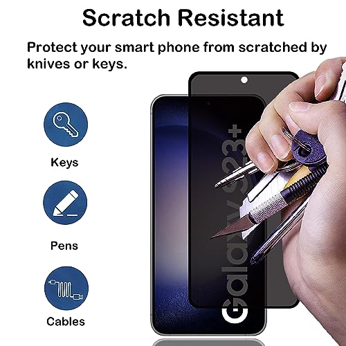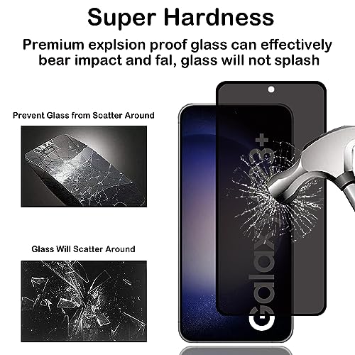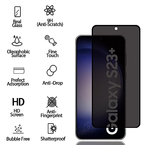 BCHKLAI - واقي شاشة للخصوصية لموبايل سامسونج جالاكسي S23 بلس / S23+ 5G [2 قطعة]، غشاء من الزجاج المقسى مضاد للتجسس، التعرف على بصمات الأصابع، صلابة 9، مضاد للخدش، مضاد لبصمات الأصابع، واقي شاشة مضاد للتجسس