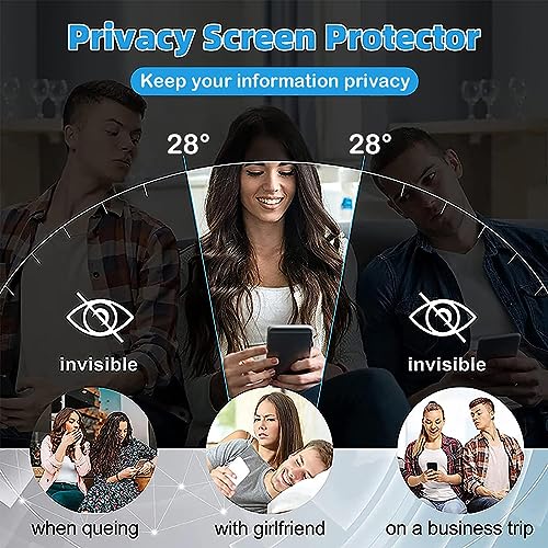 - 【خصوصية عالية】الشاشة مرئية فقط للأشخاص الموجودين أمام الشاشة مباشرة. وتضمن أن تكون الشاشة غير مرئية لأي شخص غريب يجلس بجانبك. شاشة حماية الخصوصية توفّر زاوية خصوصية قوية تبلغ 28°، مما يضمن مستوى أمان أعلى مقارنة بزجاج الحماية المضاد للتطفل بزاوية 30 درجة المتوفر في السوق. تحافظ على معلوماتك الشخصية والحساسة آمنة من الغرباء من حولك في المناسبات العامة.