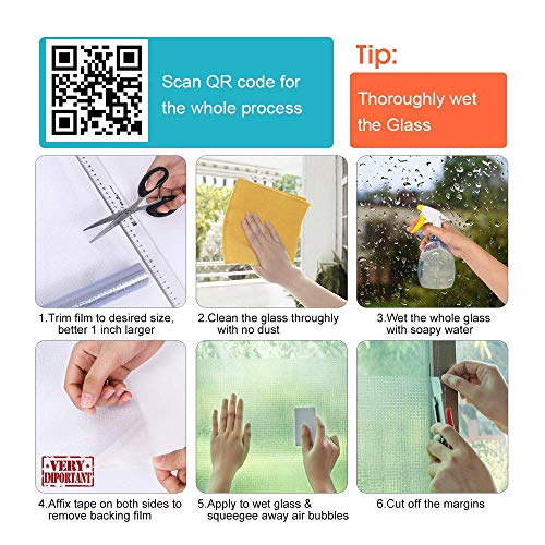 - 🎁 سهل الاستخدام: يمكن وضع لاصق النافذة للخصوصية على أي سطح زجاجي أملس بسهولة في دقائق؛ سهل التركيب والإزالة للغاية (تذكر تقشير الطبقة الخلفية الشفافة أولاً)، ويمكنك قصه إلى أي مقاسات/أشكال تحتاجها ثم تزيين غرفة المعيشة والحمام والمطبخ والمكتب وما إلى ذلك (يتم توفير تعليمات فيديو مفصلة، مع تعليمات التركيب المطبوعة داخل الصندوق)