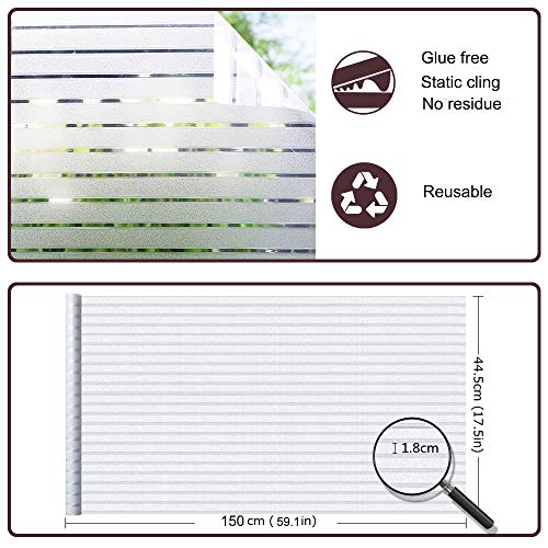 Homein - طبقة لاصقة بشريط ابيض للنافذة للحفاظ على الخصوصية، غشاء نافذة بلوري ذاتي اللصق وقابل للازالة، ملصق نافذة زجاجي مزخرف بدون صمغ لحجب الاشعة فوق البنفسجية للمكتب والمطبخ، 17.5 × 59 بوصة