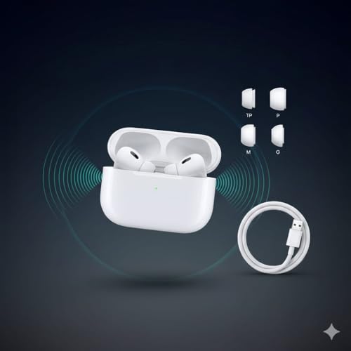 Generic - سماعات الأذن برو 2 بلس بخاصية إلغاء الضوضاء، سماعات أذن مريحة مصنوعة من مواد عالية الجودة، جودة صوت فائقة الوضوح، علبة شحن لاسلكي بمنفذ USB نوع C