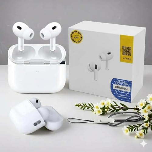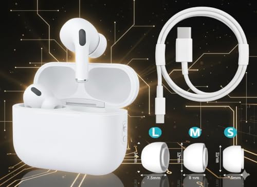 Generic - سماعات اذن برو 2 ترو لاسلكية مع بلوتوث، علبة شحن، خاصية الغاء الضوضاء النشطة، مقاومة للماء IPX5، متوافقة مع ايفون واندرويد - ابيض