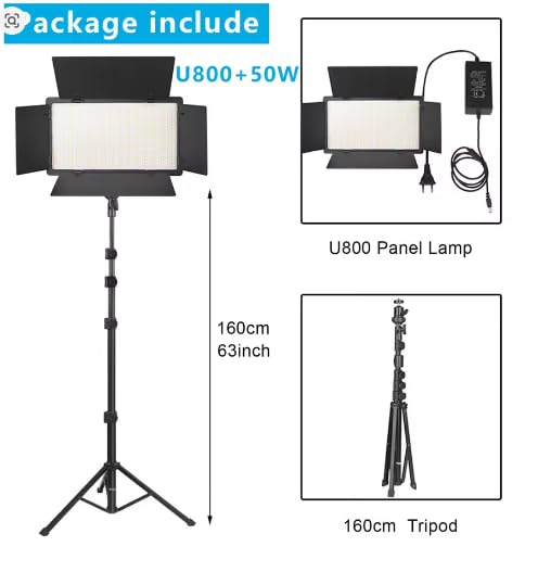 Generic - مصباح ليد PRO LED U800 ، ضوء خافت مع حامل ثلاثي القوائم ، تحكم عن بعد لتسجيل الفيديو ، ثلاثى الالوان (ابيض - اصفر - ميكس ) 50 واط