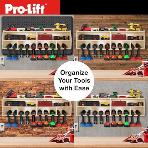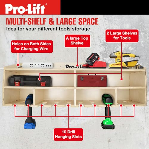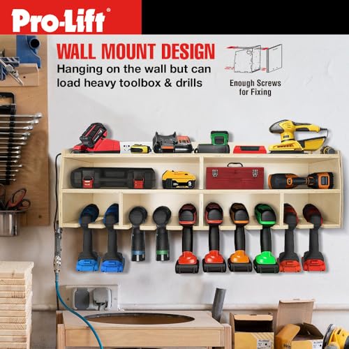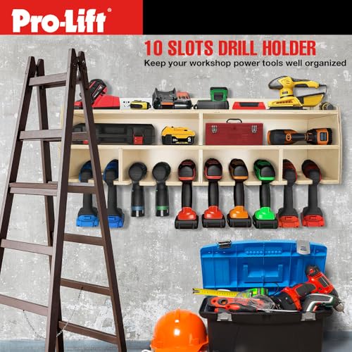 Pro-LifT - برو ليفت منظم شنيور لاسلكي - رف تخزين ادوات كهربائية يثبت على الحائط، 10 فتحات للتعليق، خشبي M-005W