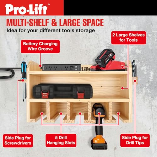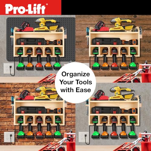 Pro-LifT - منظم شنيور لاسلكي M-003W مصنوع من الخشب يثبت على الحائط ومزود بـ 5 فتحات لتخزين الأدوات الكهربائية من برو ليفت