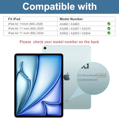 - ✅ عبوة واحدة حصريًا لجهاز ايباد اير الجيل السادس 11 انش M2 2024 (رقم الموديل: A2902، A2903، A2904)؛ يرجى التحقق من رقم الموديل في الجزء الخلفي من جهاز ايباد الخاص بك قبل الشراء (غير متوافق مع أي موديلات ايباد أخرى)