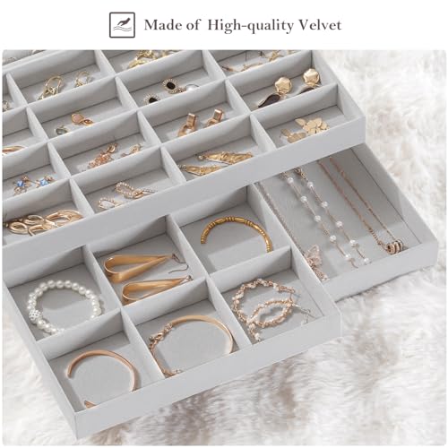ProCase - مجموعة من 3 صواني تنظيم مجوهرات قابلة للتخزين للأدراج بروكيس درج مقسم لتخزين المجوهرات مع فواصل للإزالة للخواتم والحلقان والسلاسل والأساور والساعات - لون رمادي مخمل