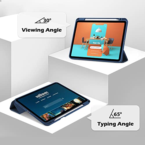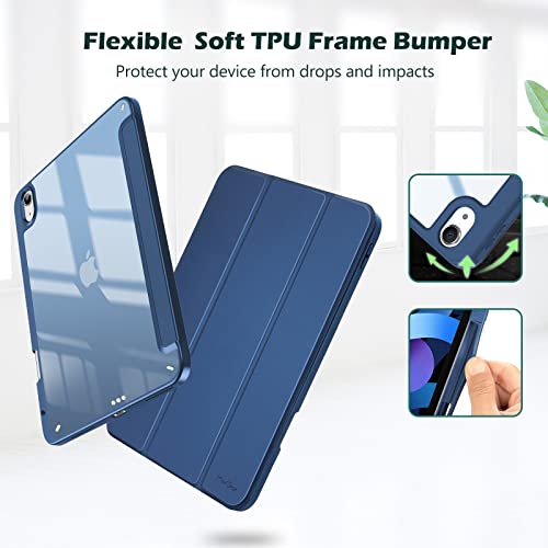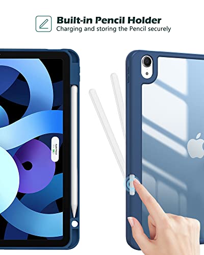 ProCase - جراب لجهاز ايباد اير الجيل الخامس 2022/ ايباد اير الجيل الرابع 2020 مقاس 10.9 بوصة مع حامل قلم، جراب ذكي مع غطاء خلفي شفاف متوافق مع ايباد اير 5 4 من برو كيس - أزرق، مايكرو فايبر
