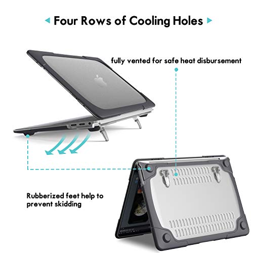 ProCase - جراب حماية متين وشديد التحمل ممتص للصدمات بمسند لجهاز ماك بوك برو 13 M2 2022 / برو 13 M1 2020 (A2338 A2289 A2251) من برو كيس، لون أسود