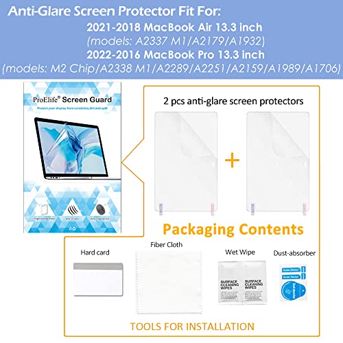 ProElife - شاشة حماية مطفية مضادة للانعكاس من برو ايلايف، متوافقة مع جهاز ماك بوك اير 13 بوصة إصدارات 2018-2021 (بشريحة آبل M1 موديل A2337/A2179/A1932) وماك بوك برو 13.3 بوصة إصدار 2022 بشريحة آبل M2، قطعتان