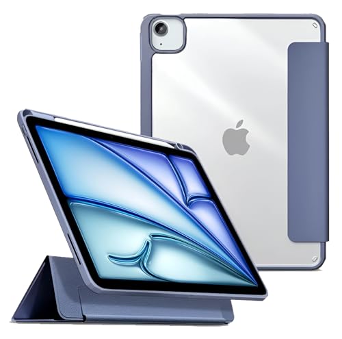 ProElite - جراب M2 إصدار 2024 لجهاز آبل اي باد اير، 13 بوصة، جراب مغناطيسي هجين قابل للفصل مع حامل قلم من برو ايليت، لون أرجواني فاتح [ظهر شفاف]