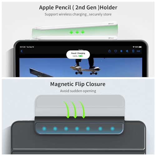 - لدينا ما تحتاجه: فتحات مثالية لمكبرات الصوت والكاميرا والمنافذ الأخرى. يدعم الغطاء الذكي المغناطيسي وظيفة النوم/الاستيقاظ التلقائي، ويحمي ويطيل عمر البطارية. يمكن للغطاء الأمامي ثلاثي الطي أن يدعم جهاز ايباد في وضعين واقفين للعرض والكتابة. يدعم المرفق المغناطيسي لقلم ابل الجيل الثاني وميزات الشحن (القلم غير متضمن). كلاسيكي واحترافي