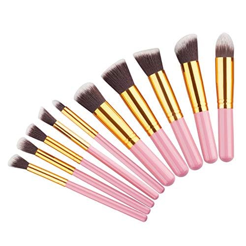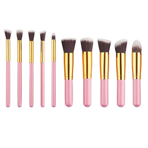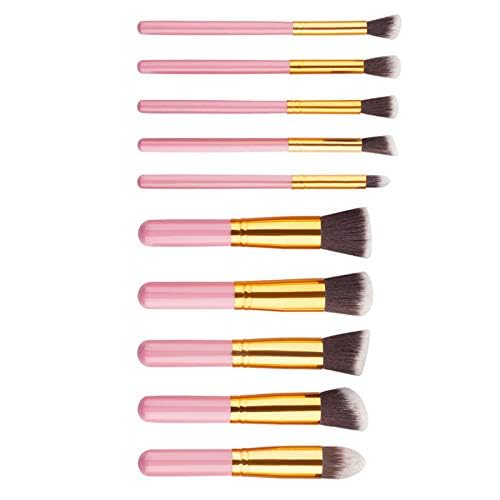 غير معروف - مجموعة فرش مكياج احترافية مكونة من 10 قطع من مستحضرات التجميل ومزج كريم الأساس - وردي
