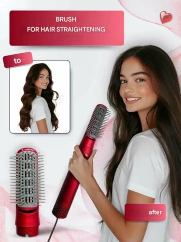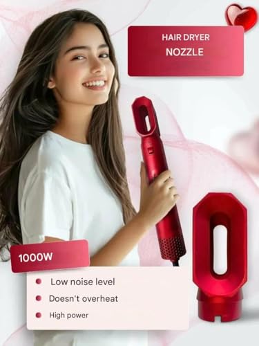 Generic - فرشاة استشوار احترافية 5 في 1 مع ملحقات تصفيف الشعر وتجعيد الشعر، 1000 واط، أحمر، مستوى ضوضاء منخفض