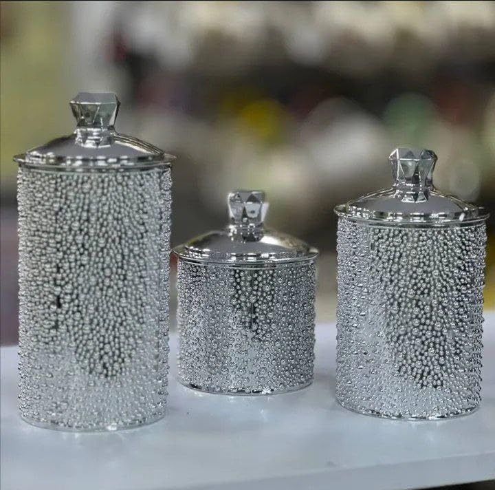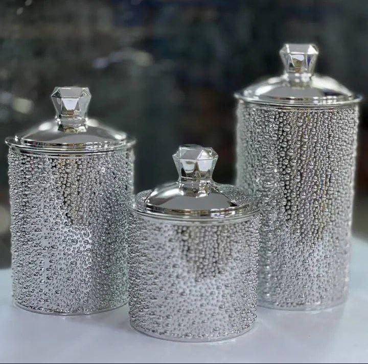 Generic - طقم منظمات أكريليك احترافي 3 قطع متعدد الاستخدامات - أوعية تخزين فاخرة بغطاء محكم وجوان حماية للحلويات والمكسرات ومستلزمات الضيافة بتصميم عصري وأنيق l