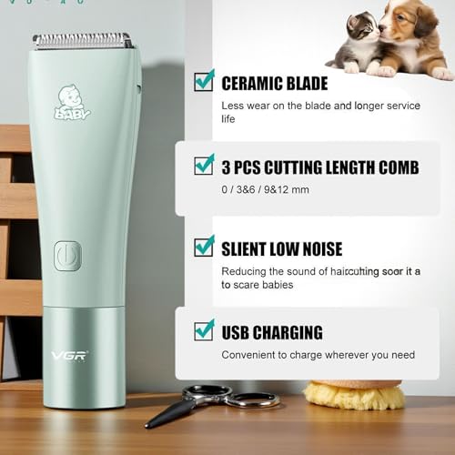 Generic - ماكينة حلاقة شعر احترافية للأطفال v_153، شفرة سيراميك فائقة الهدوء، مقاومة للماء، قابلة لإعادة الشحن، وقت تشغيل 120 دقيقة، مع مشطين توجيه للرضع والأطفال الصغار