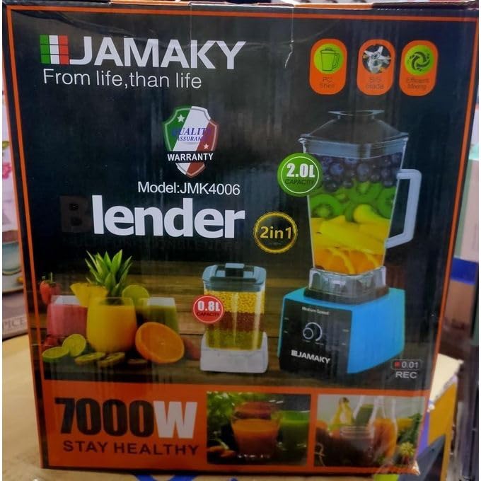- قوة المحرك: خلاط احترافي بمحرك قوي 7000 وات يوفر أداءً عالياً لتكسير الثلج وطحن التوابل وتحضير المخفوقات بسهولة وسرعة