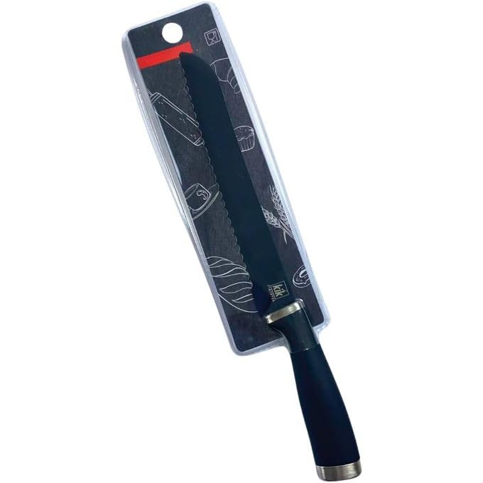 Generic - سكين خبز احترافي مع حافة مسننة، شفرة من الصلب عالي الكربون، كبير، مقبض يد غير قابل للانزلاق، هيكل تانغ كامل، أسود، 32 سم