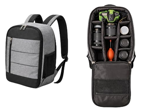 Generic - شنطة ظهر احترافية للكاميرا مع مساحات تخزين متعددة، رمادي، تناسب ما يصل الى 6 عدسات وكاميرا، حماية عالية، جيوب جانبية وسحاب امامي، متوافقة مع كاميرات نيكون وكانون وسوني