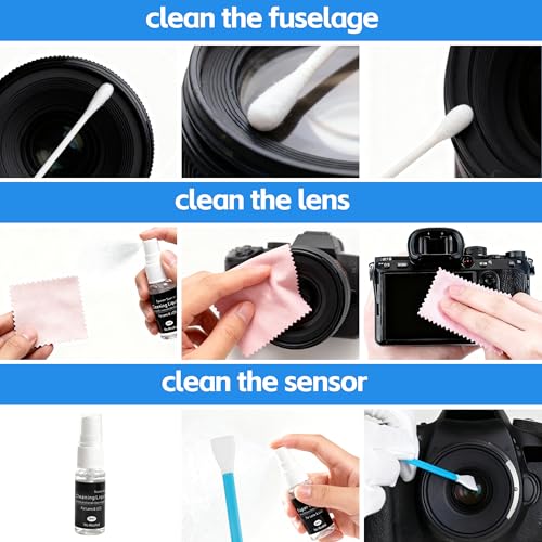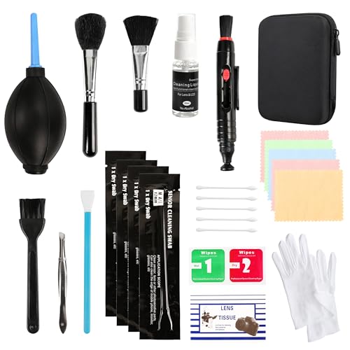 ZHABAYEN - مجموعة تنظيف الكاميرا الاحترافية، ملحقات تنظيف كاميرا دي اس ال ار مع ورق العدسة، محلول تنظيف، مسحات قطنية، قماش خالٍ من الغبار، قلم عدسة، فرشاة تنظيف