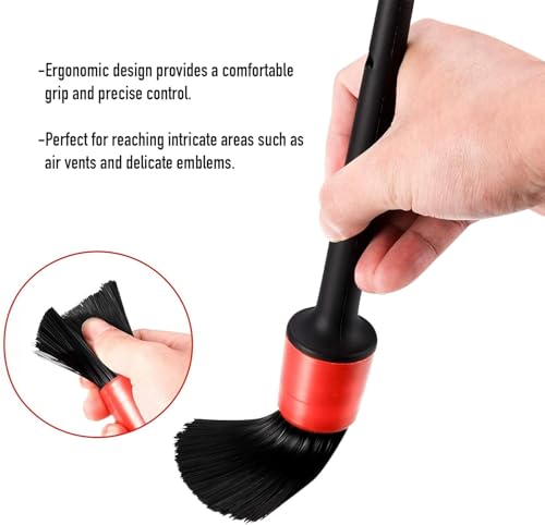 - تنظيف دقيق: تتيح أحجام وأشكال الفرش المختلفة تنظيفًا دقيقًا لفتحات التهوية والزوايا الضيقة والأسطح المعقدة للسيارات.
