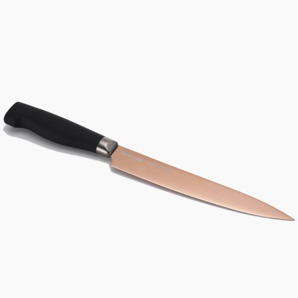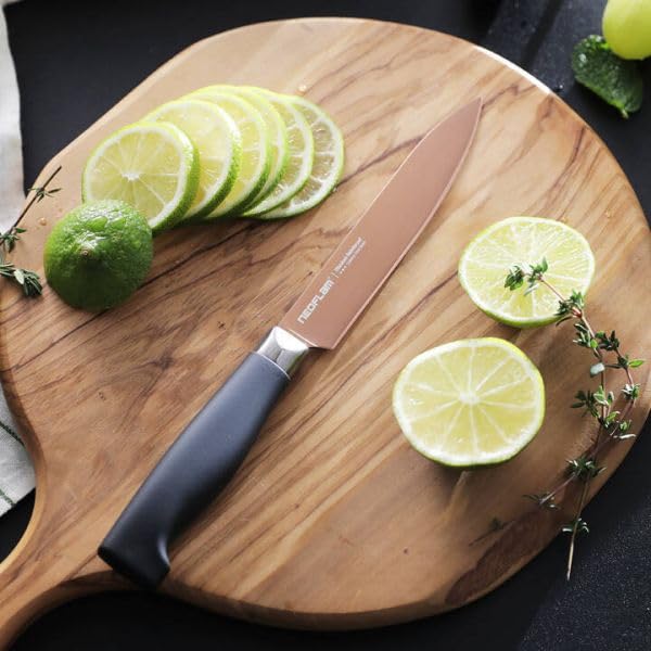 Generic - سكين شيف احترافي بشفرة من التيتانيوم الذهبي الوردي، مقبض اسود مريح، 20 سم