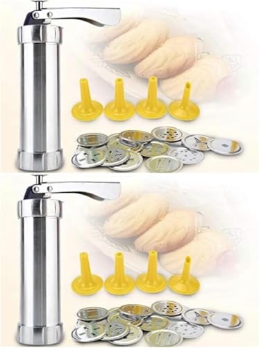 Generic - ماكينة تحضير البسكويت بالضغط الاحترافية باشكال، اداة خبز يدوية لبيتي فور والكوكيز والحلوى المنزلية المزخرفة (عبوتان)