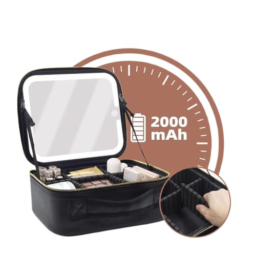 - شنطة تنظيم جمال احترافية مزودة بمرآة مضيئة LED توفر إضاءة مثالية لرؤية واضحة، مع وحدة طاقة مدمجة تدوم لأيام طويلة من الاستخدام المستمر.