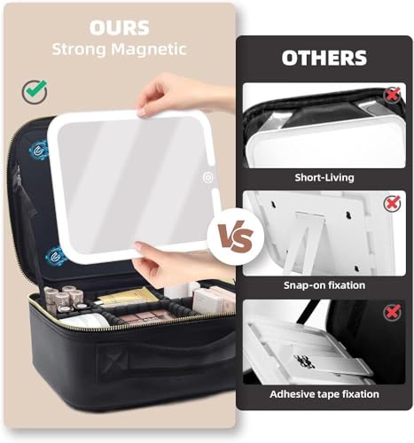 Generic - شنطة تنظيم مستحضرات تجميل احترافية بمرآة مضيئة LED - منظم مكياج ذكي بمرآة مغناطيسية قابلة للفصل وتقسيم داخلي مرن للسفر والتنقل ka