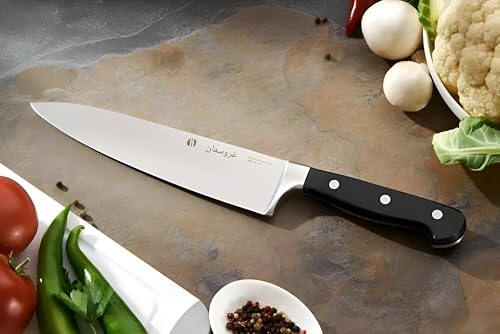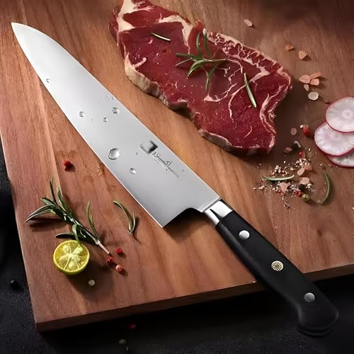 - سكين الطهاة مقاس 8 انش هذا هو قطعة أساسية للمطبخ الاحترافية مصنوعة من الستانلس ستيل الألماني عالي الكربون، مما يوفر شفرة حادة بشكل استثنائي، وسدادة كاملة لتحقيق التوازن والقوة، ومقبض مريح مصمم لتوفير الراحة والتحكم الدقيق أثناء مهام التقطيع والفرم والتقطيع والتقطيع.